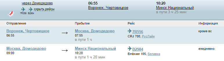 Купить можно в кассе аэропорта Воронежа. Авиа билет на самолет Москва - Минск можно оформить на официальном ресурсе авиа перевозчика Белавиа - belavia.by/.