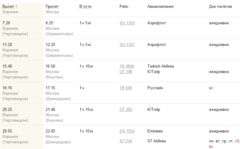 Из Воронежа в столицу России летает много самолетов в течение дня: