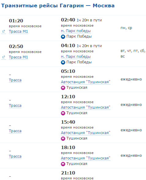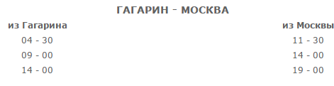 Расписание автобусных рейсов по маршруту Гагарин - Москва