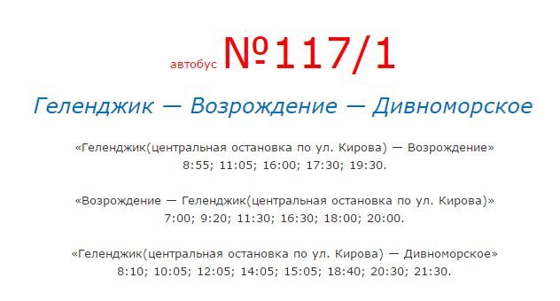 Единственная возможность проезда из Геленджика в Дивноморское, если не имеется автомобиля - поездка на автобусе или маршрутке. Единственный минус в том, что этот транспорт ходит в этом направлении со Старого автовокзала или с улицы Кирова от Центрального рынка, а многие междугородние автобусы прибывают на новый автовокзал. Чтобы попасть на остановки, с которых можно уехать в Дивноморское, нужно либо 700 метров пройтись пешком до Старого вокзала, либо сесть на автобусы № 2, 6, 40 и проехать в центр города до рынка. Имеется еще один нюанс, автобусы с номерами до 100 отправляются со второй остановки, до этой цифры – от первой остановки. Зато, сев на автобус, через 15 – 20 минут окажетесь на месте. В Дивноморское ходят рейсы № 30, 32, 102, 117/1, 117/2. Примерное расписание привожу ниже, но оно может меняться.