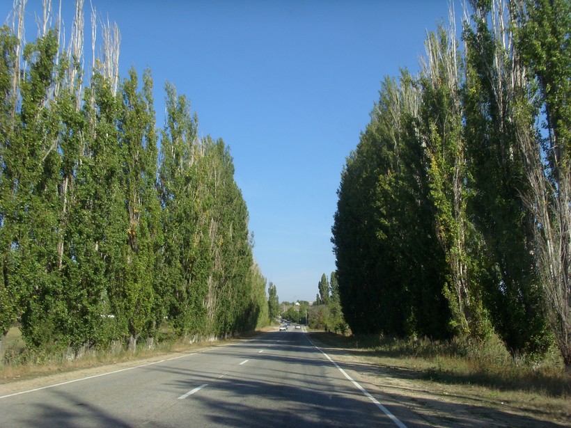 Весь путь от Евпатории до Феодосии можно разделить на два отдельных этапа. От Евпатории до столицы Крыма - Симферополя около 75 км и от Симферополя до Феодосии примерно 120 км. По прямой считается 180 км. Дорога Евпатория - Феодосия носит статус главной дорогой региона, проходит с запада на восток через полуостров. Заправлялись между Евпаторией и г. Саки на автозаправке WOG. До Симферополя еще парочка заправок была в районе аэропорта и у самого города. Очень долго задержались на выезде из Евпатории -пробка на несколько км. Только после города Саки дорога стала просторнее. Между Евпаторией и Саками располагается большой и интересный аквапарк " Банановая республика". Весь путь проходит по степной местности, небольшие спуски и подъемы особо не усложняют маршрут. По обеим сторонам дороги поля подсолнухов, виноградники, сады. Но летнее солнце и отсутствие дождей долгое время, свое дело сделали - очень пыльно. По дороге встречалось много кафешек восточной кухни и павильончиков, магазинчиков в каждом селе. Передохнуть, перекусить, посидеть в тени есть где. Остановились только купить фрукты - овощи в Родниковом. Цены заманчивые по сравнению с городскими рынками, почти в два раза дешевле. Путь до Симферополя занял 1.10. Первую гаишную машину встретили на повороте к аэропорту Симферополь. Столицу объехали по окружной очень удобной магистральной дороге, почти не заезжая в город. Отрезок пути Симферополь Феодосия более живописный и интересный. сразу после Белогорска, попадаем в предгорный Крым.