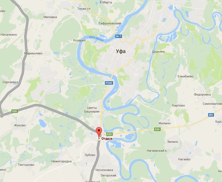 Мой радикулит требует обязательной ночевки. Последнюю организую под Уфой, на свежем воздухе, в отеле Отдых. Вот общая ситуация, дающая представление о местонахождении комплекса: