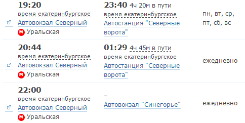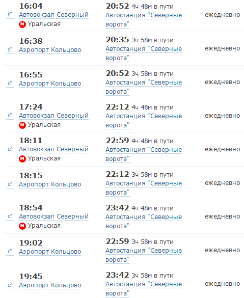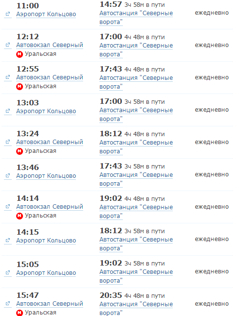 Автобусы из Екатеринбурга отправляются или с Северного автовокзала, или с аэропорта Кольцово. Я советую вам обязательно уточнять место отправки. Довольно часто я видела случаи, когда человек пришел на нужное время, но не на то место отправки.