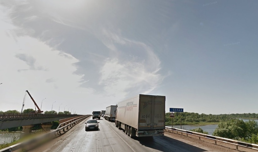 Здешние регионы имеют причудливую конфигурацию – проехав десяток километров по Челябинской области, вновь попадаю в Башкирию. Через 80 километров начинаю объезд Уфы. Вот река Белая. После реконструкции левого моста, откроют двухполосное движение в обе стороны.
