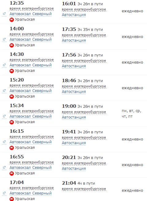 Ниже приведена информация о том, сколько часов вам потребуется, чтобы добраться от Екатеринбурга до Ирбита, а также приведена примерная стоимость проезда (средняя цена билета) на том или ином виде транспорта.