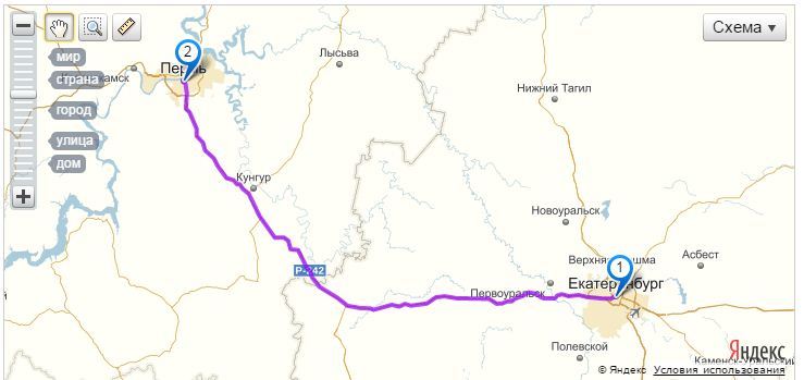 Расстояние от Екатеринбурга до Перми