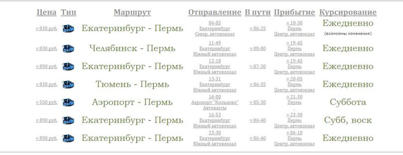 Ниже приведена информация о том, сколько часов вам потребуется, чтобы добраться от Екатеринбурга до Перми, а также приведена примерная стоимость проезда (средняя цена билета) на том или ином виде транспорта.