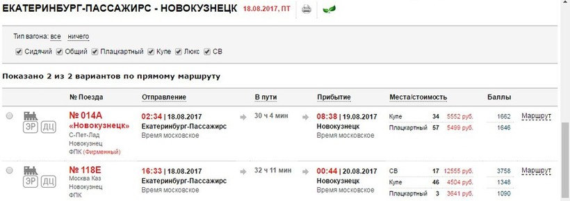 Для меня с мужем проезд по железной дороге был хоть и не самым оптимальным вариантом, но экономным. Перед тем как вообще что-либо планировать, вам надо знать, что прямого железнодорожного сообщения Екатеринбург с конечным пунктом не имеет. Сначала надо доехать до любого крупного города, который расположен рядом с курортом, а это может быть Новосибирск, Новокузнецк или Кемерово. Мы взяли билеты в Новокузнецк. Поезда до него ходят почти ежедневно пару раз в день (02:34 и 16:33). Сесть можно на состав, который идет с Москвы или Санкт-Петербурга. Путешествие займет 1 день и 6−10 часов. Есть возможность даже ехать на фирменном поезде, но места в нем дорогие, и мы с мужем отказались от такого удовольствия.