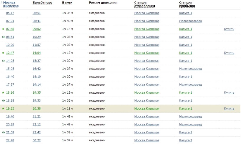С платформ Киевского вокзала регулярно отправляются электрички до станции Балабаново по расписанию.