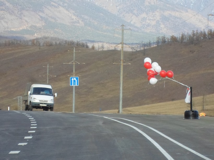 Мы выехали через северо-восточную окраину Иркутска на Якутский тракт. Далее он переходит в трассу Р-418, через Хомутово и Усть-Ордынский 130 км едем до посёлка Баяндай. Асфальтобетонное покрытие, довольно ровное, без колдобин. По одной полосе в каждую сторону, так что, обгон затруднён. Я не особо расстраивался этому обстоятельству и наслаждался видами вокруг дороги, имея, как почётный пассажир, на это полное право.