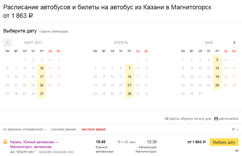 - Автобус из Казани до Магнитогорска – от 1863 рублей;