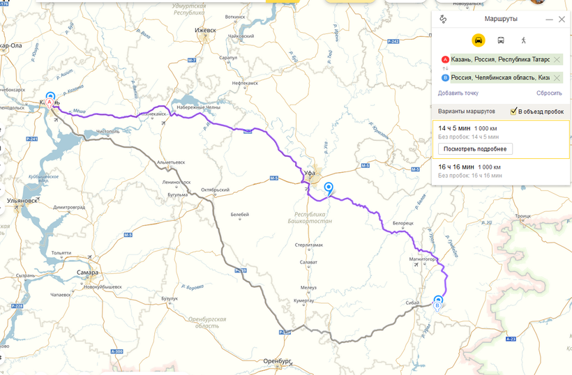 Это самый простой способ добраться из Казани в Аркаим. Расстояние в пути – более 1000 километров. Имея хорошие навыки вождения или возможность поменяться с другим человеком (водительское удостоверение должно быть у каждого своё), можно преодолеть это расстояние за 14-15 часов. Если вы не уверены, что сможете доехать из Казани до Аркаима за день, можно остановиться в придорожном мотеле или заранее забронировать гостиницу в Уфе. Есть два удобных маршрута: