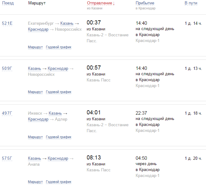Одним из самых простых вариантов добраться до Краснодара из Казани является железнодорожный транспорт. Продолжительность такой поездки - не более 44 часов.