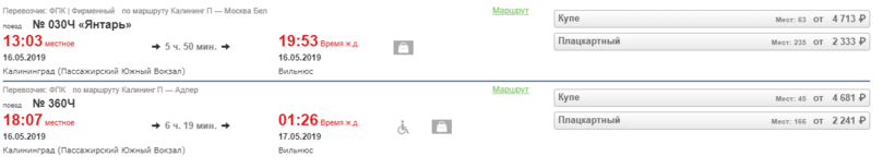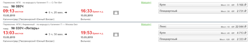 Представляете, из Калининграда в Вильнюс ходит прямой поезд. Точнее, целых два. Расписание меняется. По нечетным дням месяца есть поезд рано утром.