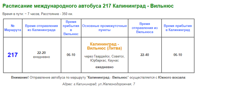 Есть еще автобус № 217. Он идет дольше, зато каждый день и ночью, можно выспаться и свежим и отдохнувшим приехать в Вильнюс.
