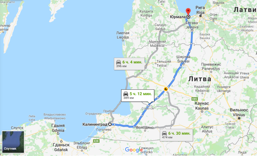 Один из самых оптимальных маршрутов лично для меня. Ездить люблю, машину чувствую хорошо, дороги в радость. И даже отсутствие своего автомобиля в Калининграде меня мало останавливало, всегда есть сервисы типа такого, которые выручают туристов без машинок. Да и дорога от Калининграда до Юрмалы не такая уж утомительная, около 400 километров можно и часов за 6 проехать, дороги-то отличные. Тем более на выбор целых три пути. Один из которых идет через Клайпеду и включает в себя паромную переправу. Он, наверное, интереснее, но не советую его. Пока дождешься очереди на паром, лишние деньги на билет, море непредсказуемое... Лучше уж проехать через Советск по трассе А-216. Ехать через Володино по Е-28 вообще смысла не вижу, только крюк большой делать.