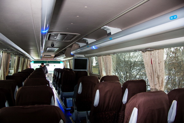 Автобусом, как и поездом, можно доехать с пересадками. При этом часть пути можно доехать на автобусе, часть на поезде. Салоны в автобусе достаточно удобны и при желании можно даже находясь в сидячем положении, вздремнуть. Также желающие могут посмотреть видео и выпить кофе.