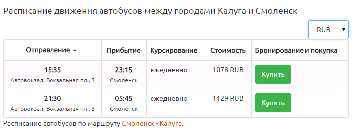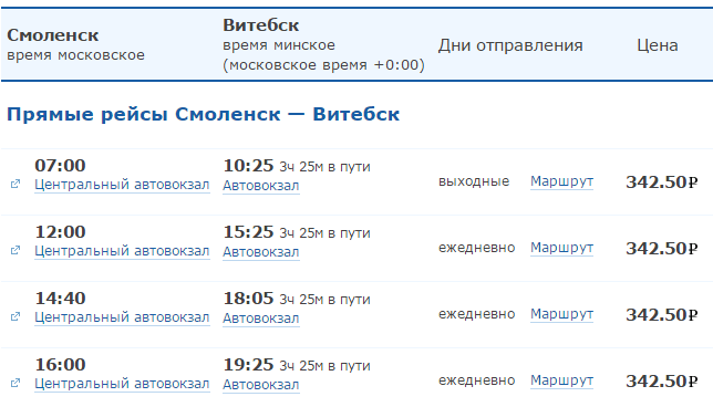 Стоимость билета на автобус до Смоленска от 1078 рублей