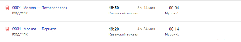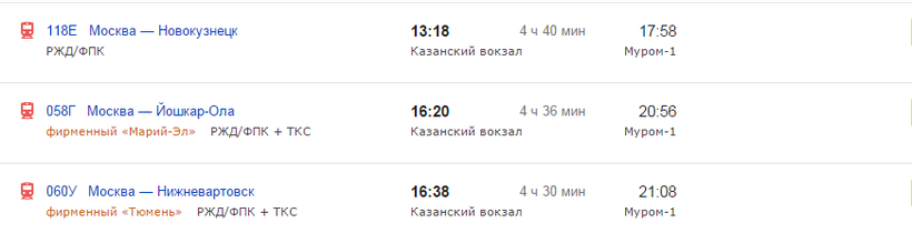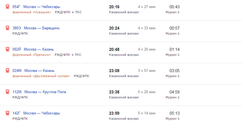 Билет на электричку до Москвы стоит около 264 рублей. На поезд до Мурома стоимость проезда примерно следующая: