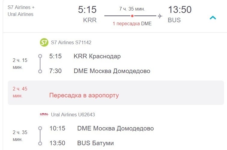 Прямые рейсы из Краснодара в Батуми не осуществляются, нужно лететь с пересадкой. Ее оптимальнее всего сделать именно в Москве. Вот один из вариантов.