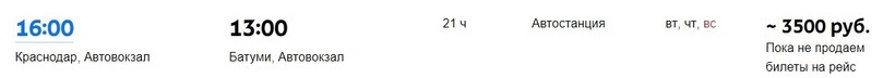 Билет на автобус до Батуми стоит 3500 рублей.
