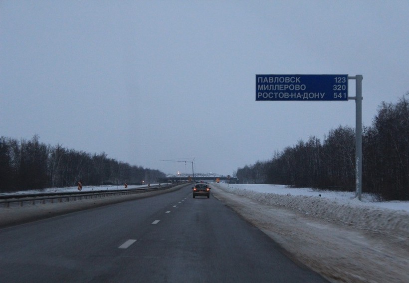 В первый день путешествия мы ехали исключительно по трассе М-4. Зимой она менее загружена, чем летом, но трафик очень большой. Здесь всегда много фур. Покрытие идеальное, много полос в каждую сторону. На платных участках все быстро и четко, никаких пробок. Платные участки трассы меня просто поразили своим качеством, не думал, что у нас в России может быть такая дорога. Инфраструктура здесь тоже прекрасная.