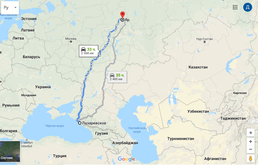 Ниже приведена информация о том, сколько часов вам потребуется, чтобы добраться от Лазаревского до Яра, а также приведена примерная стоимость проезда (средняя цена билета) на том или ином виде транспорта.