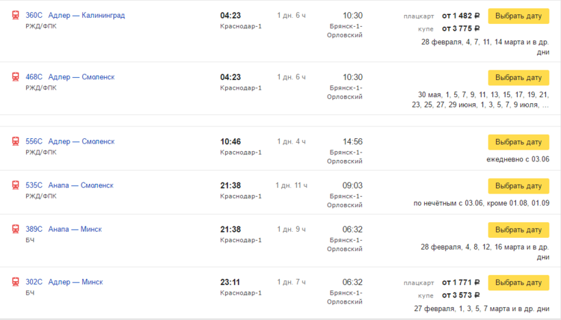 До Брянска добраться на поезде можно из Краснодара. Чтобы туда доехать, воспользуйтесь междугородним автобусом (потратив при этом 6 часов и 400 рублей). Точное расписание, наличие билетов и их стоимость стоит узнавать заранее (желательно за месяц). Путешествие на поезде займет у вас примерно 30-40 часов.