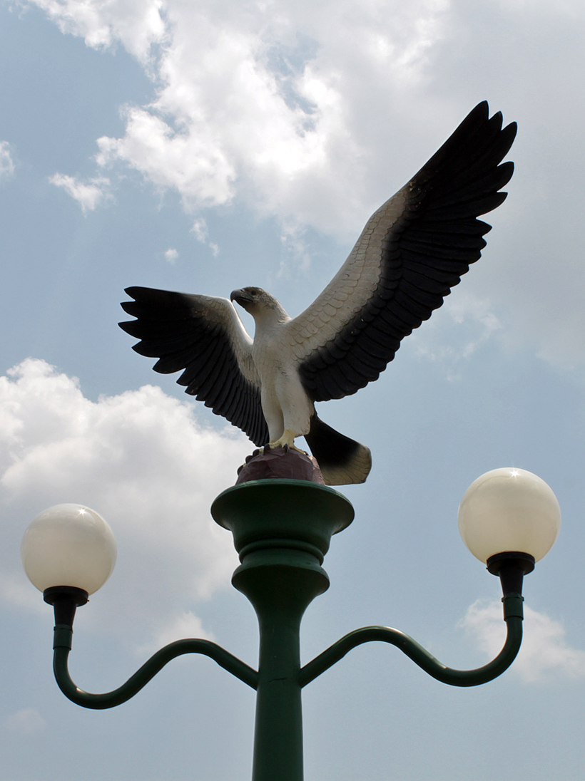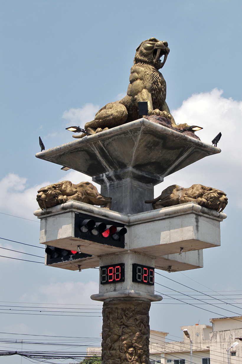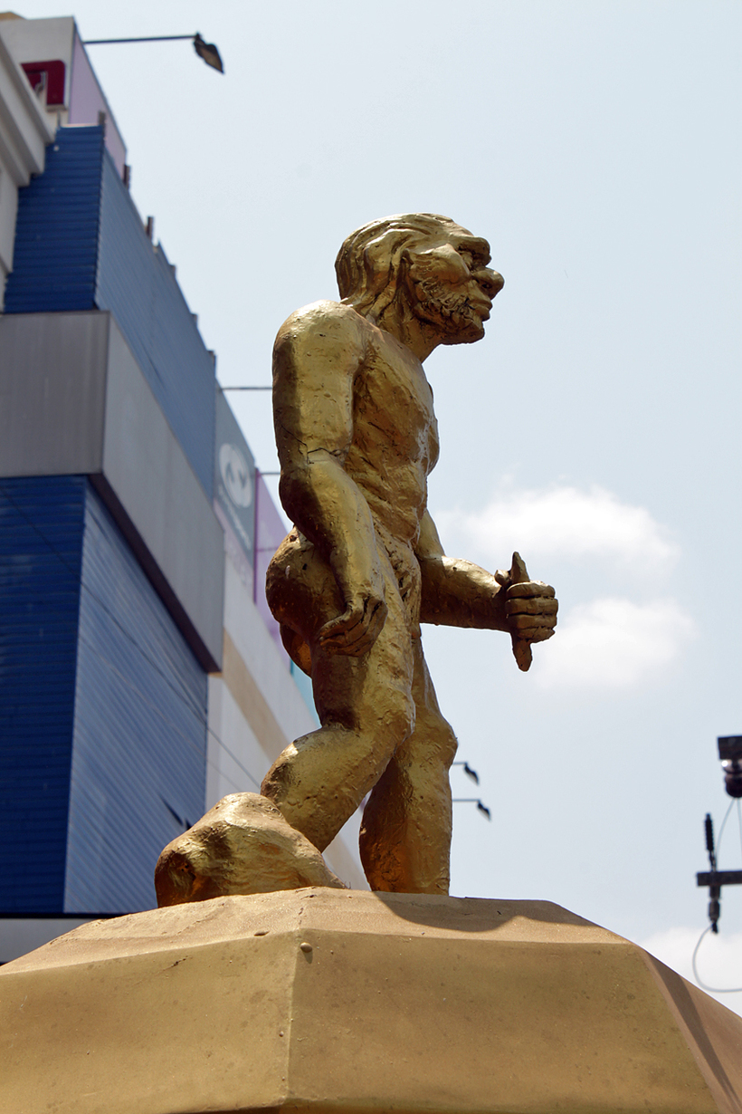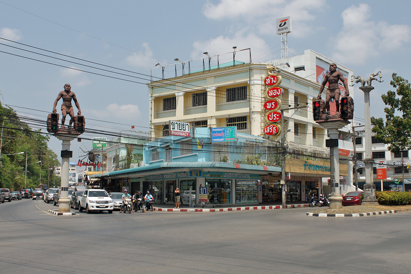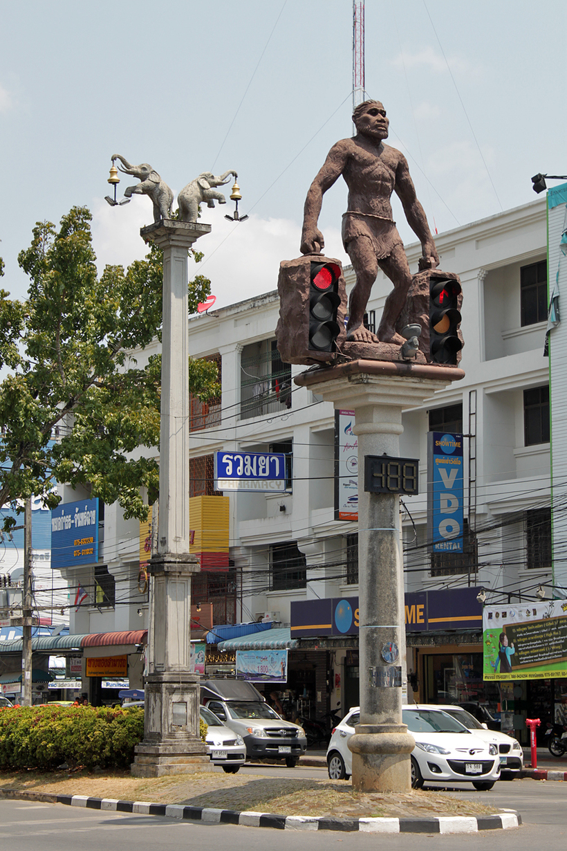 Вообще, необычные скульптуры разбросаны по Краби-тауну в самых неожиданных местах. Надо только почаще задирать голову и смотреть по сторонам. Вот, например, забавные светофоры с неандертальцами.
