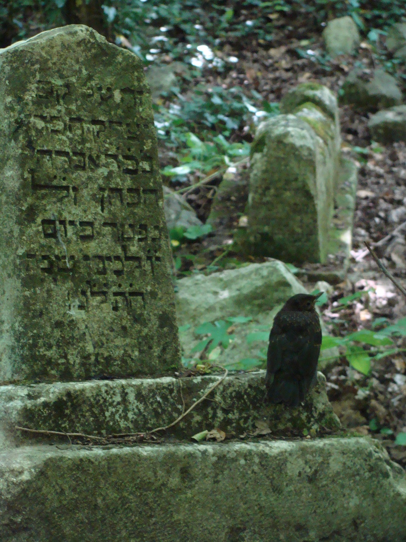 Ещё из приятных особенностей: вы поднимаетесь среди тени деревьев, перед которыми отступает дневная жара (если это происходит летом). Вам будут встречаться сохранившееся с древних времен каменные надгробья. На одном из таких нас поджидал местный пернатый сторож.