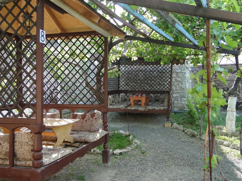 А блюда здесь очень вкусны. С большой благодарностью всегда вспоминаем гостеприимный персонал этого заведения. Тут можно спокойно посидеть за дастарханом под спасающим от солнца навесом. Неподалеку есть живописное озеро. И вы можете, совершив подъем на Мангуп, после поужинать и остаться тут на ночевку с палаткой под щедрым на звезды крымским небом.