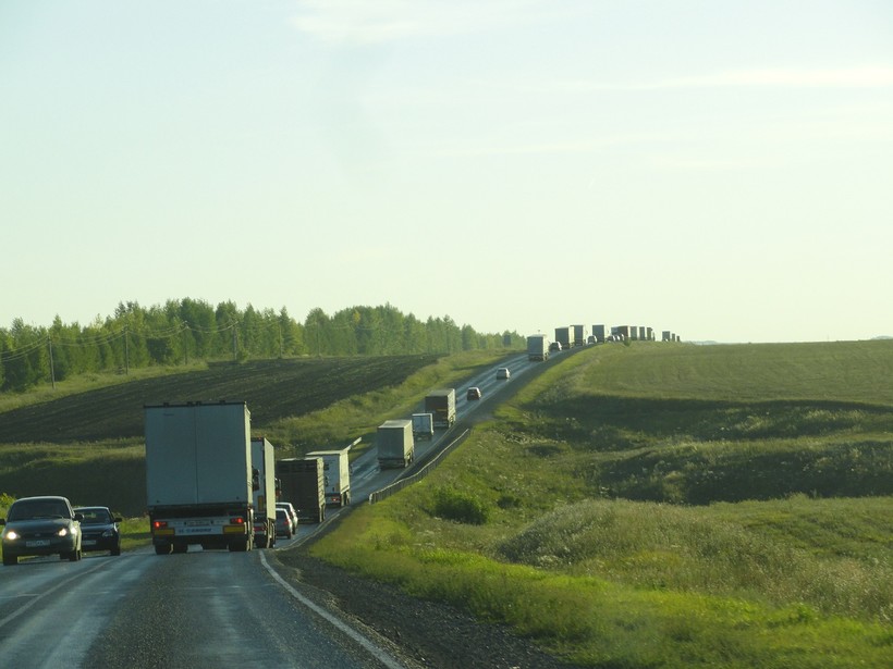 Очень часто на перевалах гружённые фуры едут со скоростью 40 км/ч, приходится много обгонять по встречке. А из-за рельефа местности не всегда просто это сделать. Да и качество полотна хромает, а из-за тех же фур обзорность на дороге минимальная. На некоторых участках постоянно идут ремонтные работы, а это влечёт за собой снижение скорости до 20 км/ч, из-за реверсивного движения на таких участках всегда заторы. На перевалах погода непредсказуема, вроде бы светило солнце и тут бац ливень стеной, а после густой туман. Ничего не видно, ориентироваться приходиться по габаритам впереди идущего транспорта. Скорость не выше 50 км/ч, но "в семье не без урода", есть лихачи, которые топят сотку, обгоняя всех по встречке. Много аварий на этой трассе, не зря она носит пугающее название "дорога смерти". Челябинск остался позади, движение дальше в сторону Екатеринбурга все по той же трассе М5 "Урал". Ну что могу сказать, это подобие трассы. Вообще там дорога как заколдованная, каждый год идёт ремонт, но толку совсем нет. Все в ямах, колдобинах и выбоинах. Из-за ремонтов, опять же, можно встрять в пробке. Машину жалко, нервы тоже. Трасса эта реально как стиральная доска и положение дел не меняется со временем. Единственное, что немного радует, так это пейзажи вдоль дороги, красивая природа, часто встречаются косули. Гаишников на всём пути не было, видимо, нечего там ловить. От Екатеринбург в сторону Хантов трасса начала из хреновой превращаться в приличную, ехать стало легче. В самом Ханты-Мансийском округе вообще новое полотно, едешь как в сказке. Правда с дорожным сервисом там проблемы - нет ничего. Но это все мелочи по сравнению с тем, что там на большом расстоянии ещё нет связи. Итог поездки - все колёса на месте, зубы на полке, голова на шарнирах:))).