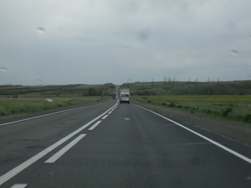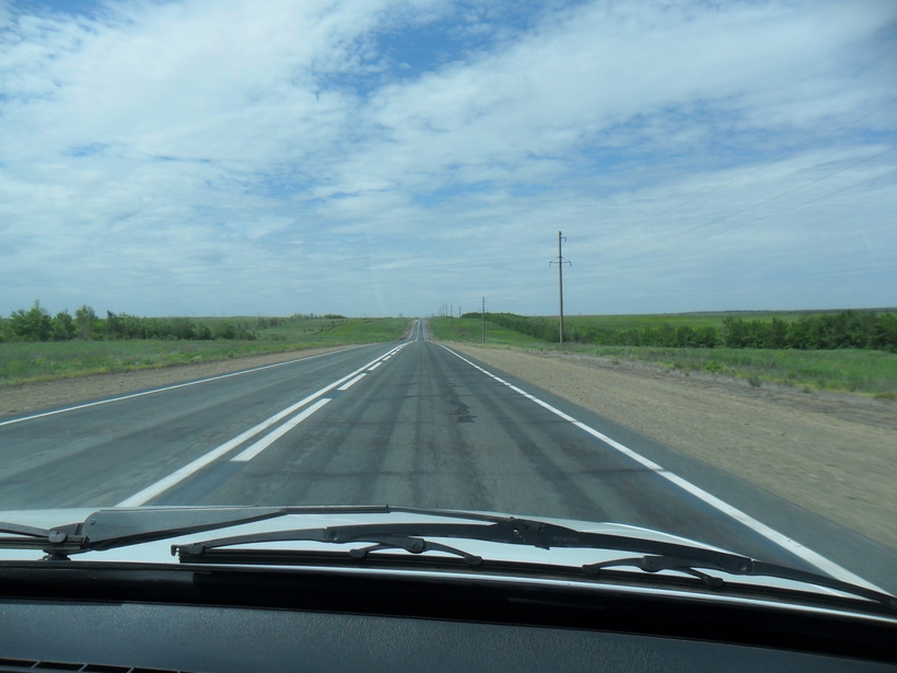 Вокруг Орска сделали новую объездную дорогу, она не загружена, скорость можно развивать большую. После Карталов лесной пейзаж сменяется на степной.