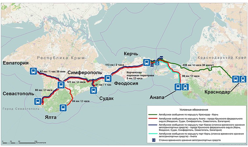 Так как сухопутное сообщение в Крым обрезано для жителей России, добираться на полуостров можно будет только через паром. Схема: "поезд- автобус - паром - автобус". Для этого необходимо воспользоваться единым билетом.