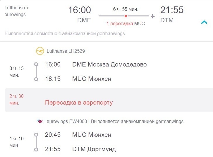 Прямые авиарейсы из Москвы в Дортмунд не осуществляются. Нужно лететь с пересадкой. Ее можно сделать, например, в Мюнхене. На дорогу потратите семь часов. Вот один из вариантов.