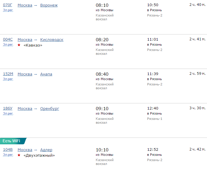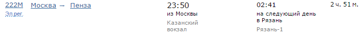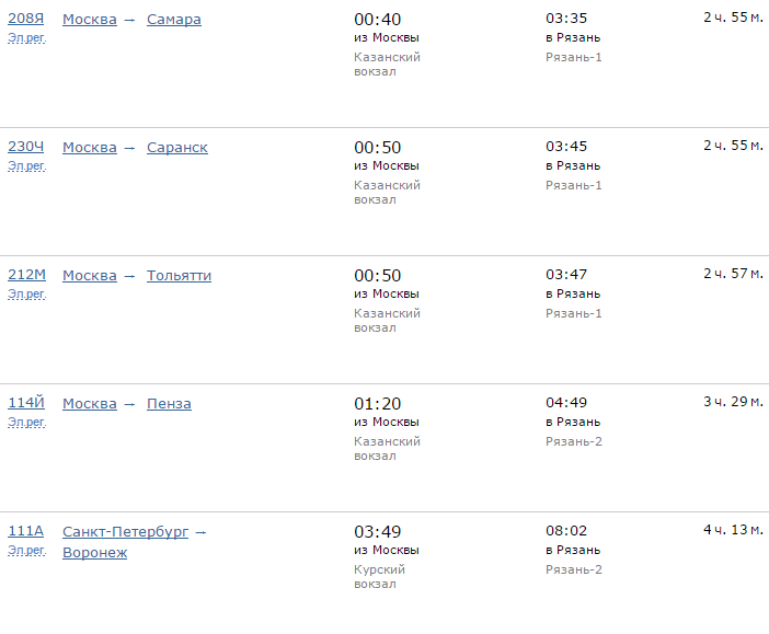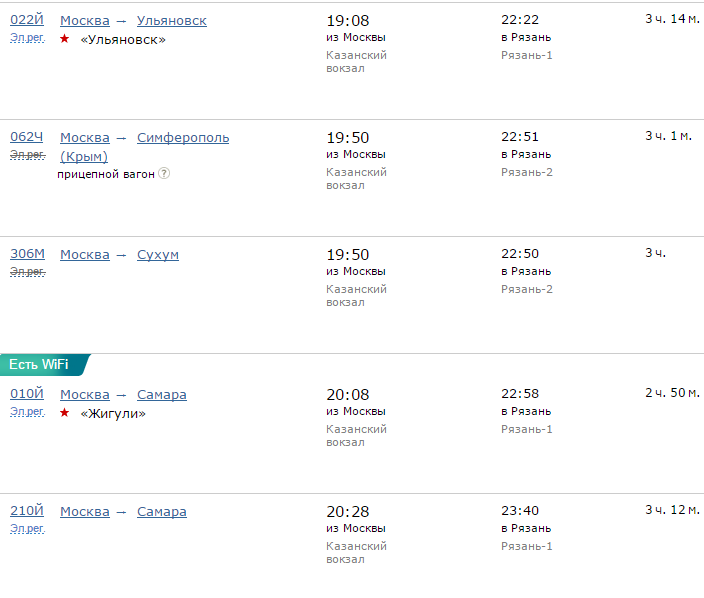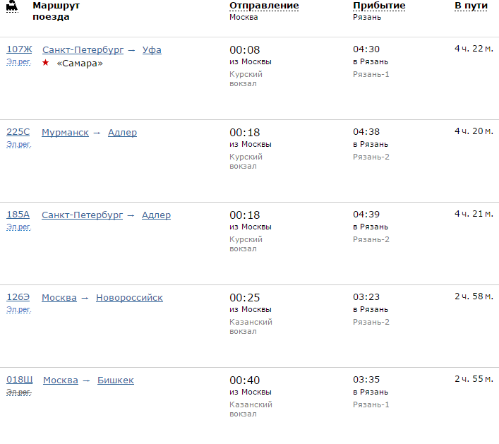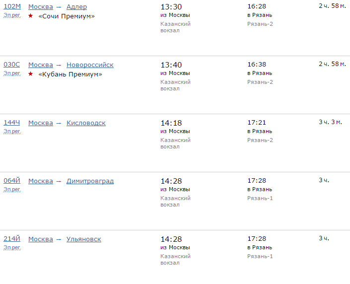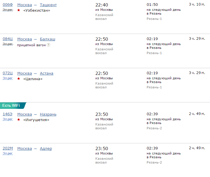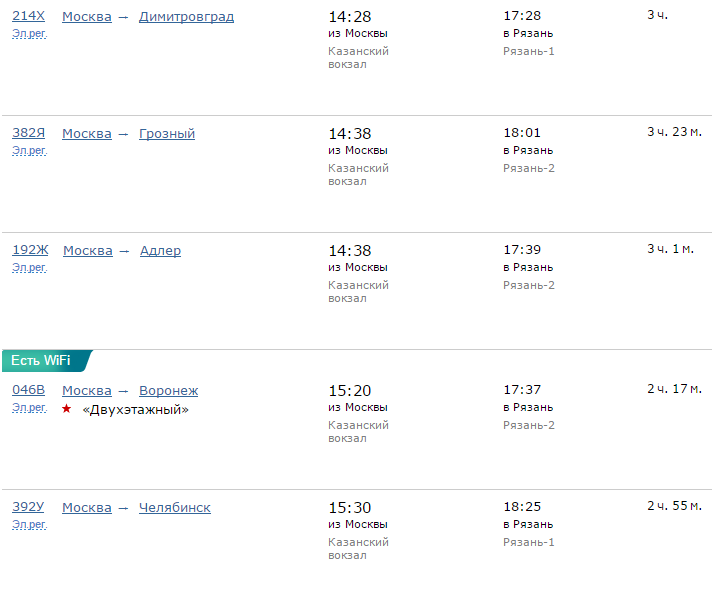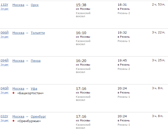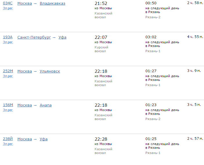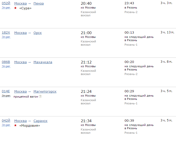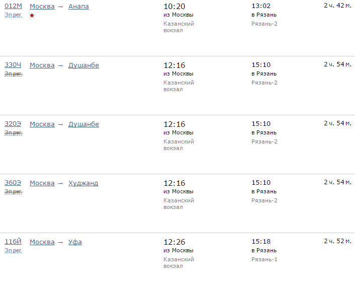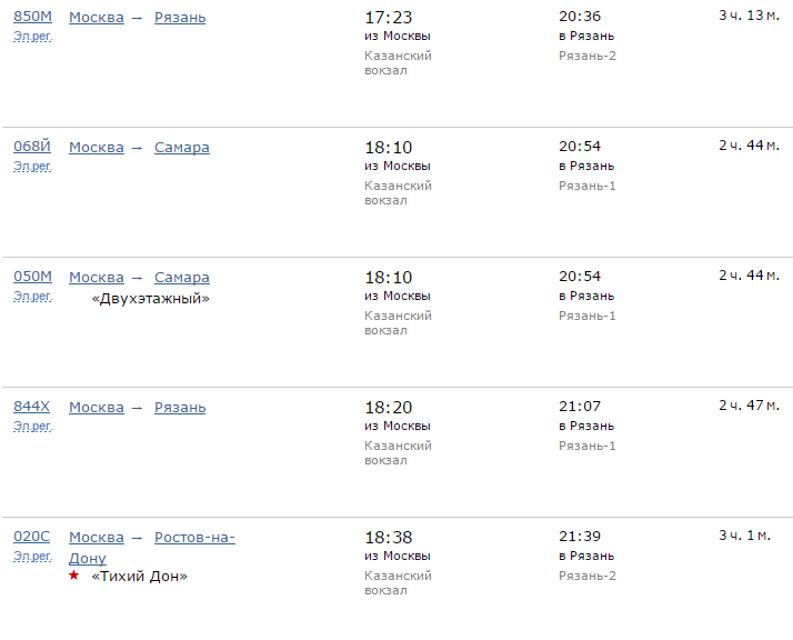 Расписание движения поездов по направлению Москва - Рязань
