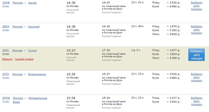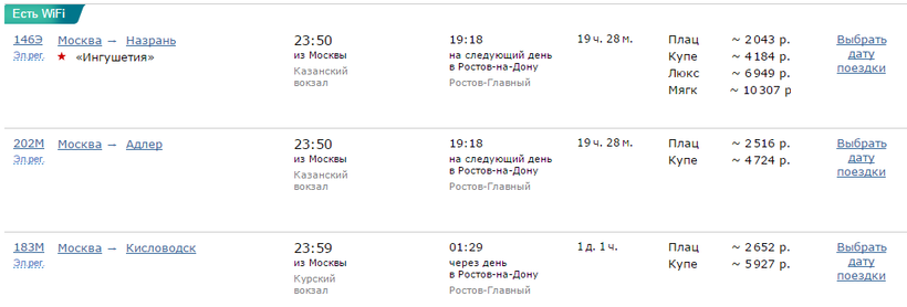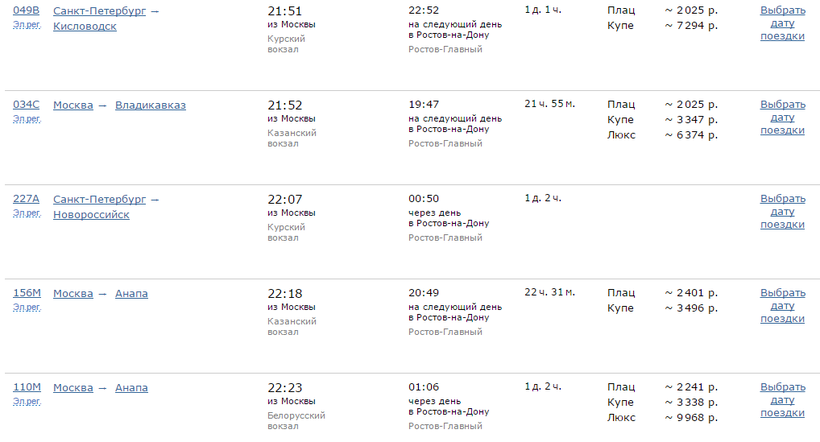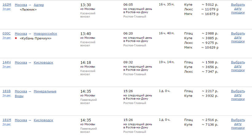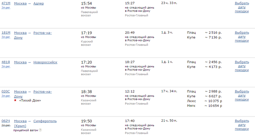 Ж/Д билеты Москва – Ростов-на-Дону