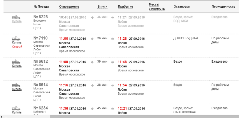 Ж/Д билеты Москва – Лобня