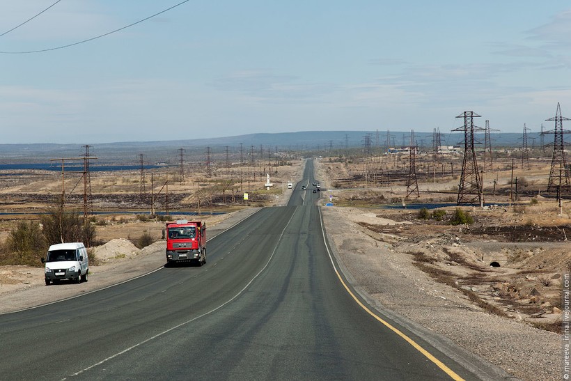 Из Мурманска выезжаем на трассу М-18, по которой и будет проходить основная часть маршрута. Дорога хорошего качества, две полосы, разметка почти везде присутствует, изредка встречаются ямы, однако, большинство трассы отремонтировано, ровный и качественный асфальт. Дорога ровная, без больших и резких поворотов и перепад высоты. Проходит по болотистой местности. Трафик достаточно низкий.
