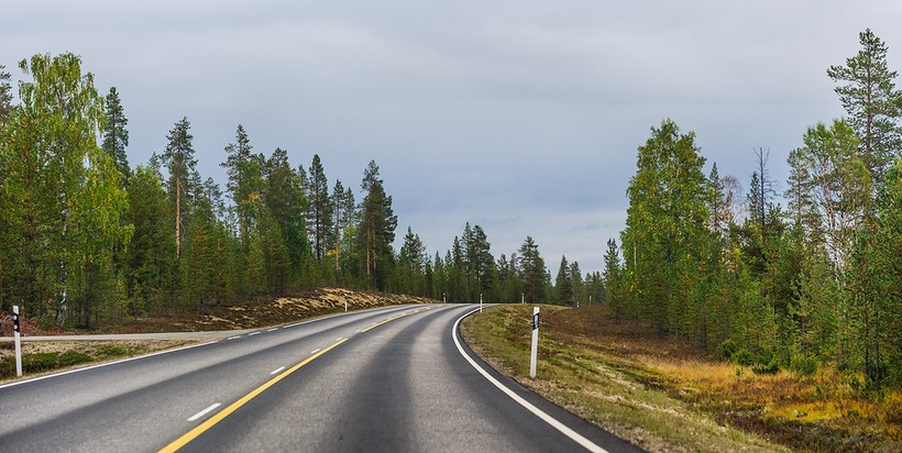 Первым делом нужно добраться до границы с Финляндией. Ехать пришлось по региональной трассе, но вполне добротного качества. Здесь низкий трафик, так что покрытие вполне пригодно для езды. Две полосы, по одной в каждую сторону, но минимум заправок.