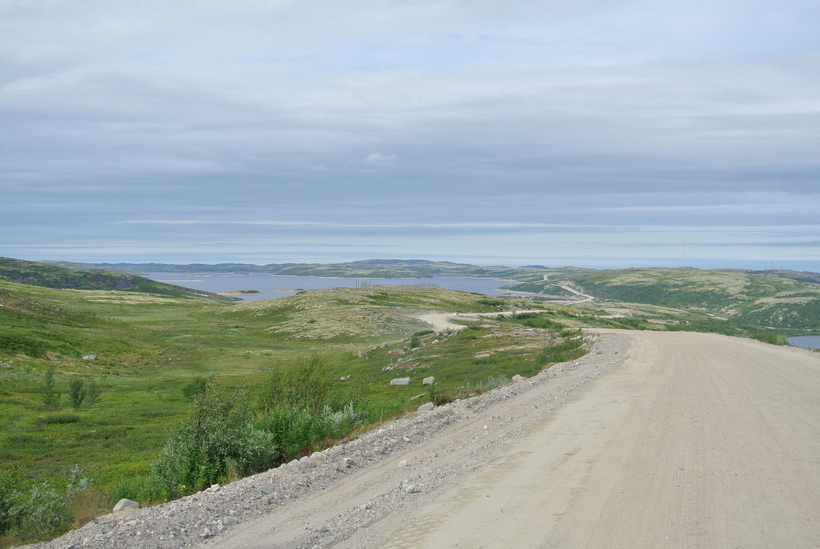 Асфальтовая дорога закончиться приблизительно через 90 км. Согласно указателю повернёте налево и оставшиеся 42 км будете трястись по укатанной грунтовой дороге с гравием. Особо разогнаться на ней не удастся, средняя скорость машин обычно составляет 30-40 км/ч. Компенсировать все неудобства может только красота бесконечной тундры, зеркальные глади озер