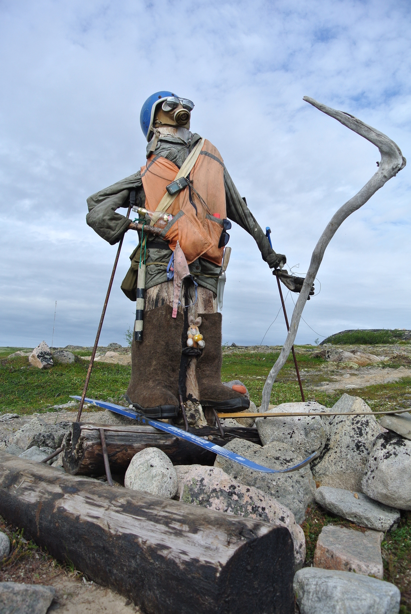 и вот такая необычная инсталляция на обочине - страж Териберки (справа от дороги, после плотины, примерно 26 км после отворотки).