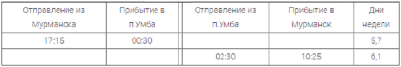 Ниже приведена информация о том, сколько часов вам потребуется, чтобы добраться от Мурманска до Умбы, а также приведена примерная стоимость проезда (средняя цена билета) на том или ином виде транспорта.