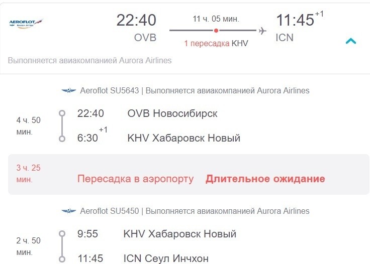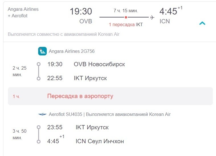 Рейсы выполняют компании: Angara Airlines и Aeroflot совместно с Korean Air. Весь путь займет немногим более семи часов.