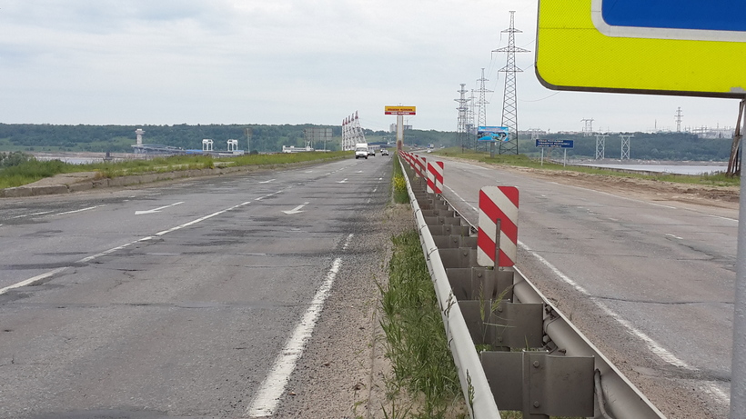 - До Чебоксар от развилки ведет трасса Р-165. Местами есть ямы, но качество трассы на твердую четверку. Здесь переезжаем через Волгу, потрясающее зрелище.
