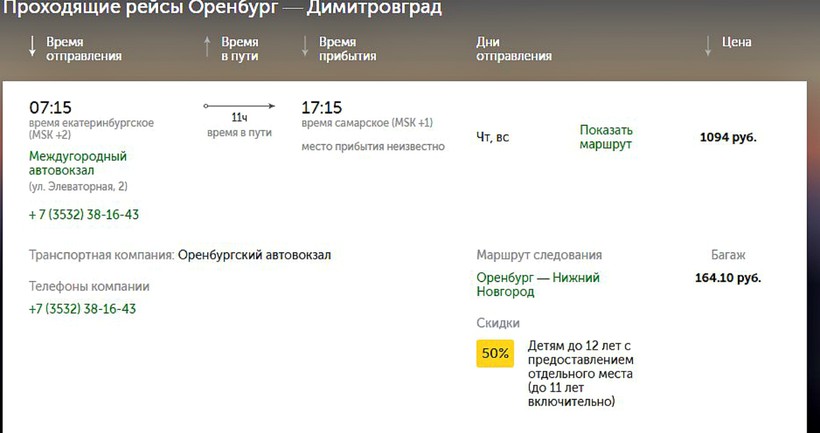 К сожалению, прямой автобус ходит всего два раза в неделю - в четверг и воскресенье, рейс № 900, Оренбург — Димитровград — Нижний Новгород. Автобус комфортабельный, большой, марки КИА.