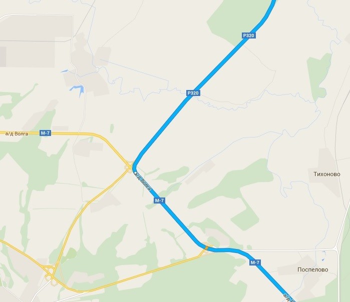 Здесь начинается М7. После поселения Поспелово беру вправо, ухожу на Р320.