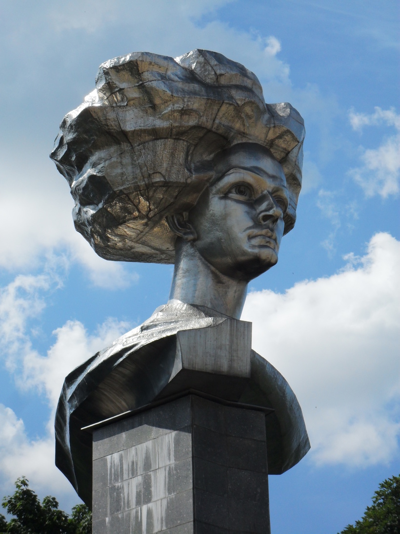 Именно такой лозунг был написан на здании напротив вокзала. Лозунг убрали, но памятник революционерке Ольге Генкиной оставили.