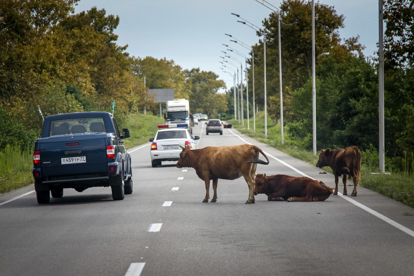 Кстати говоря, в Абхазии остановиться покушать в каком-нибудь придорожном кафетерии вы не сможете, потому что таковых вне туристических городков нет. Так что, если вы планируете перекусить в пути, то лучше берите покушать с собой. Аналогичная ситуация творится и с заправочными станциями, просто так вы не найдете ни одной бензоколонки, все они располагаются либо в населенных пунктах, либо в непосредственной близости от них.