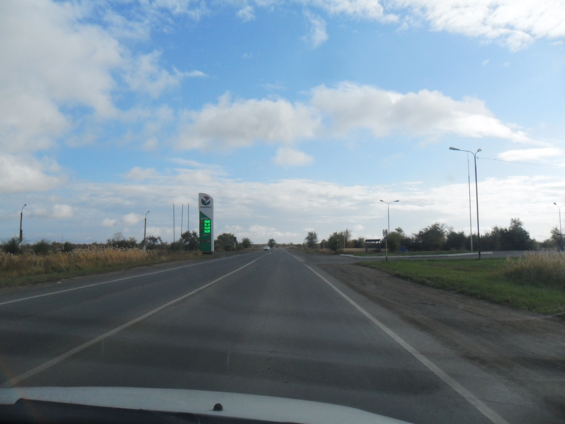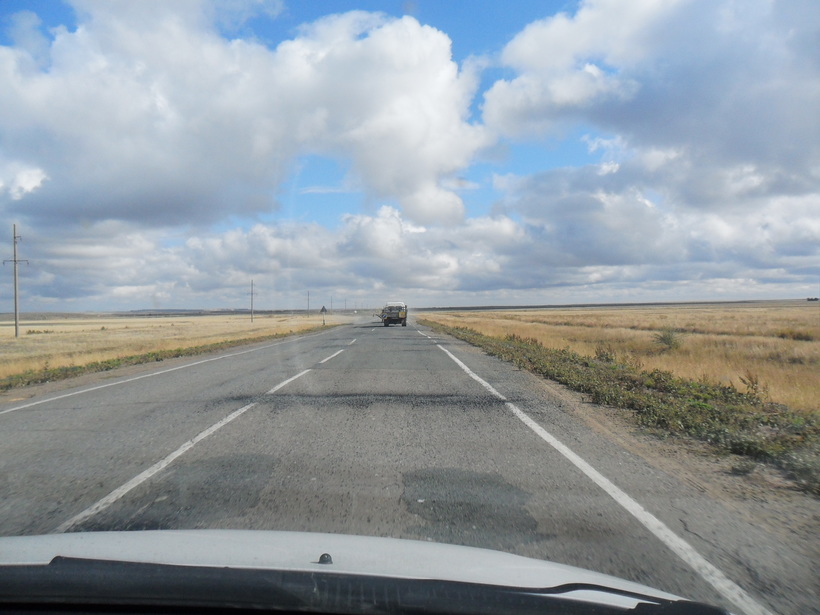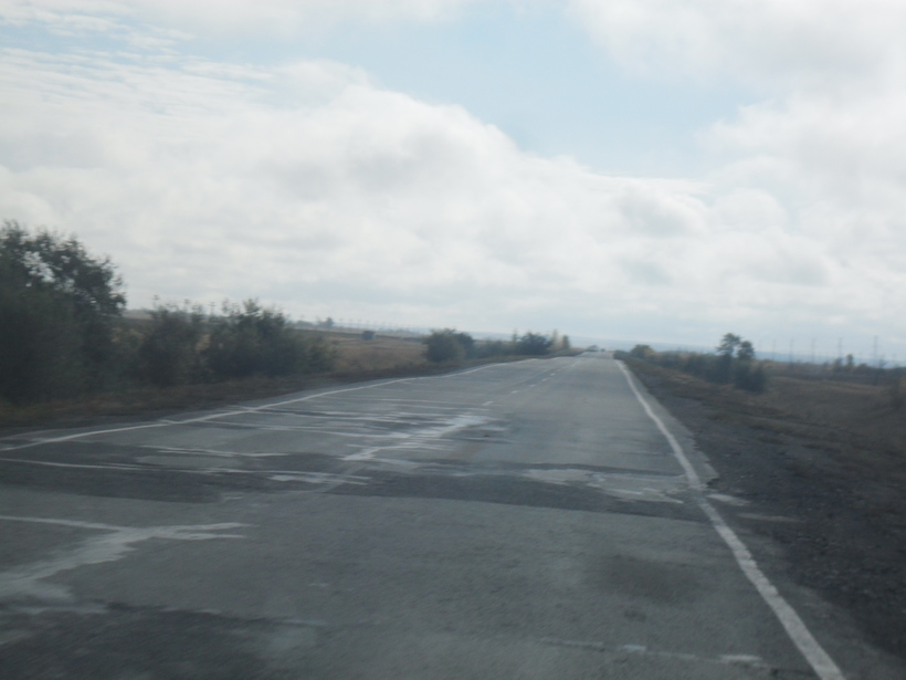 Шоссе идет по степи, растительности кругом мало, если появляются деревья, то у какого-нибудь водоема. Особенно уныло ехать поздней осенью, когда все пожухло и высохло. Зимой дорогу почти не заметает, так как она хорошо продувается ветрами, а снег у нас идет не часто. Заносы на дороге бывают редко, но если разыгралась метель, лучше от поездки воздержаться.
